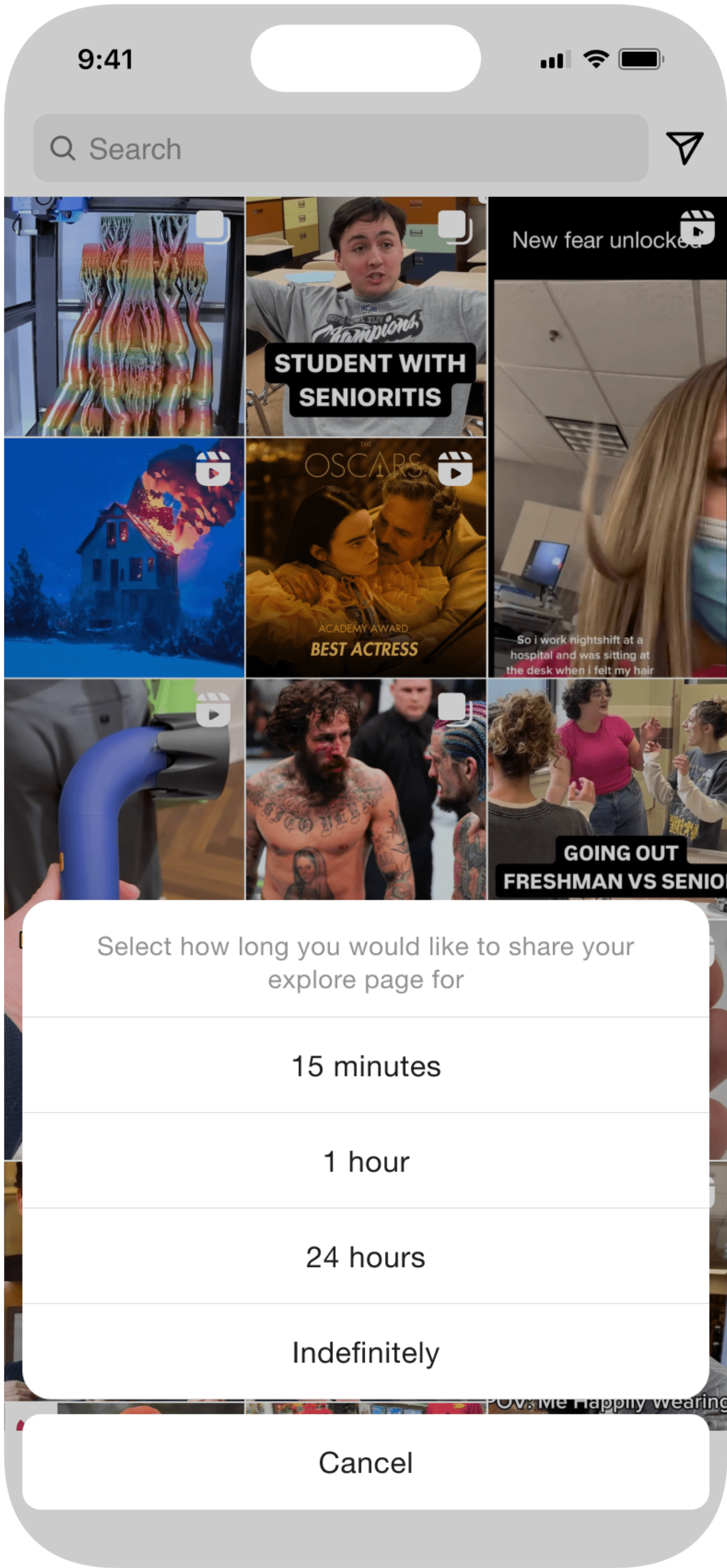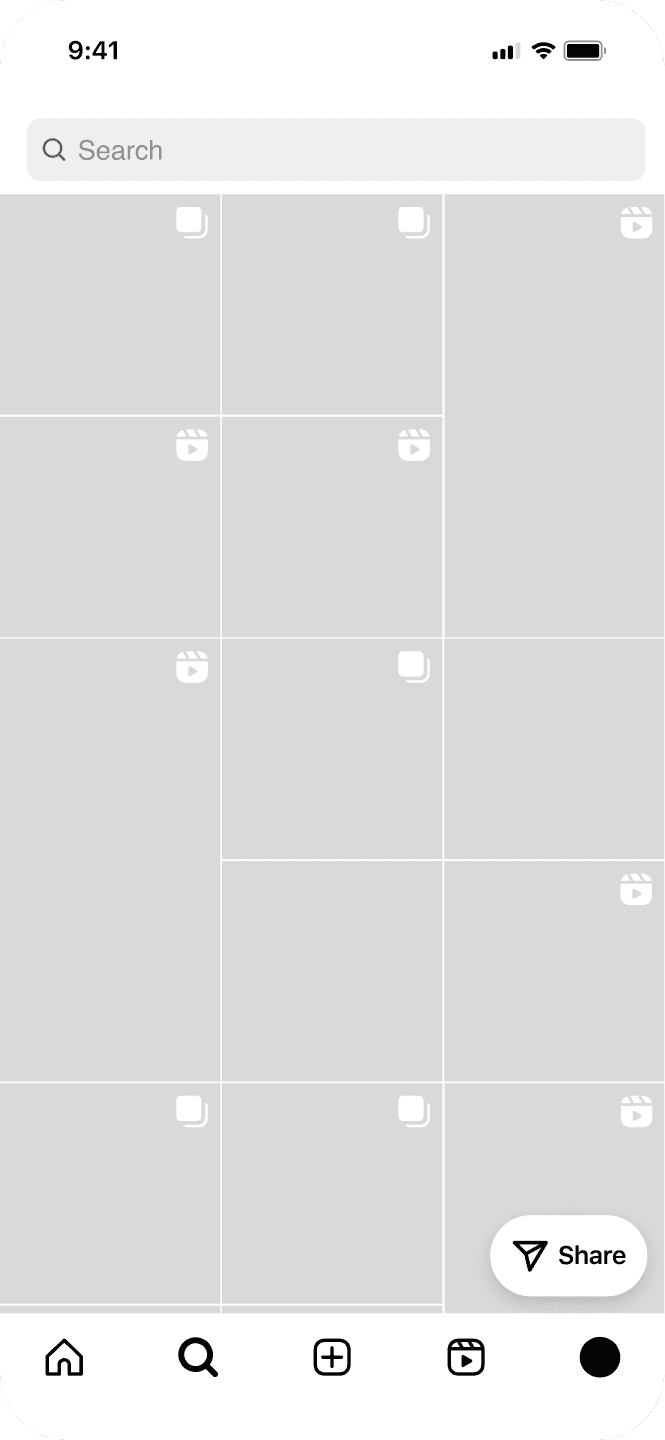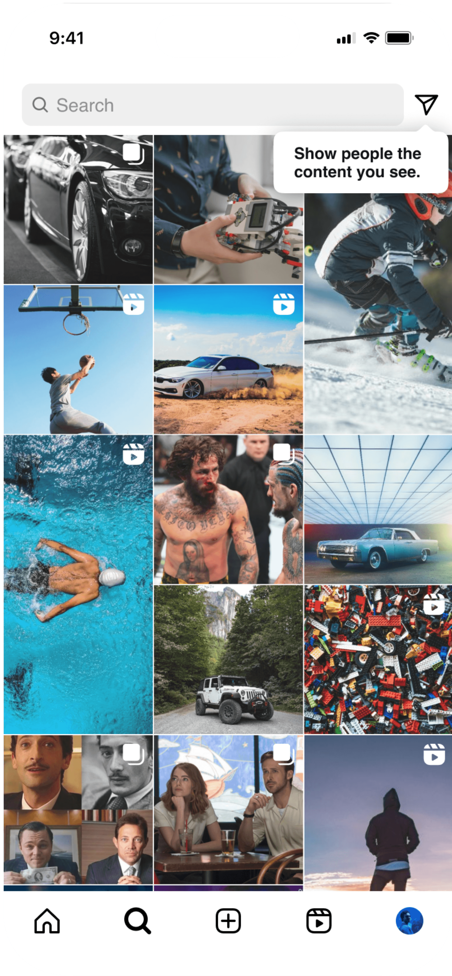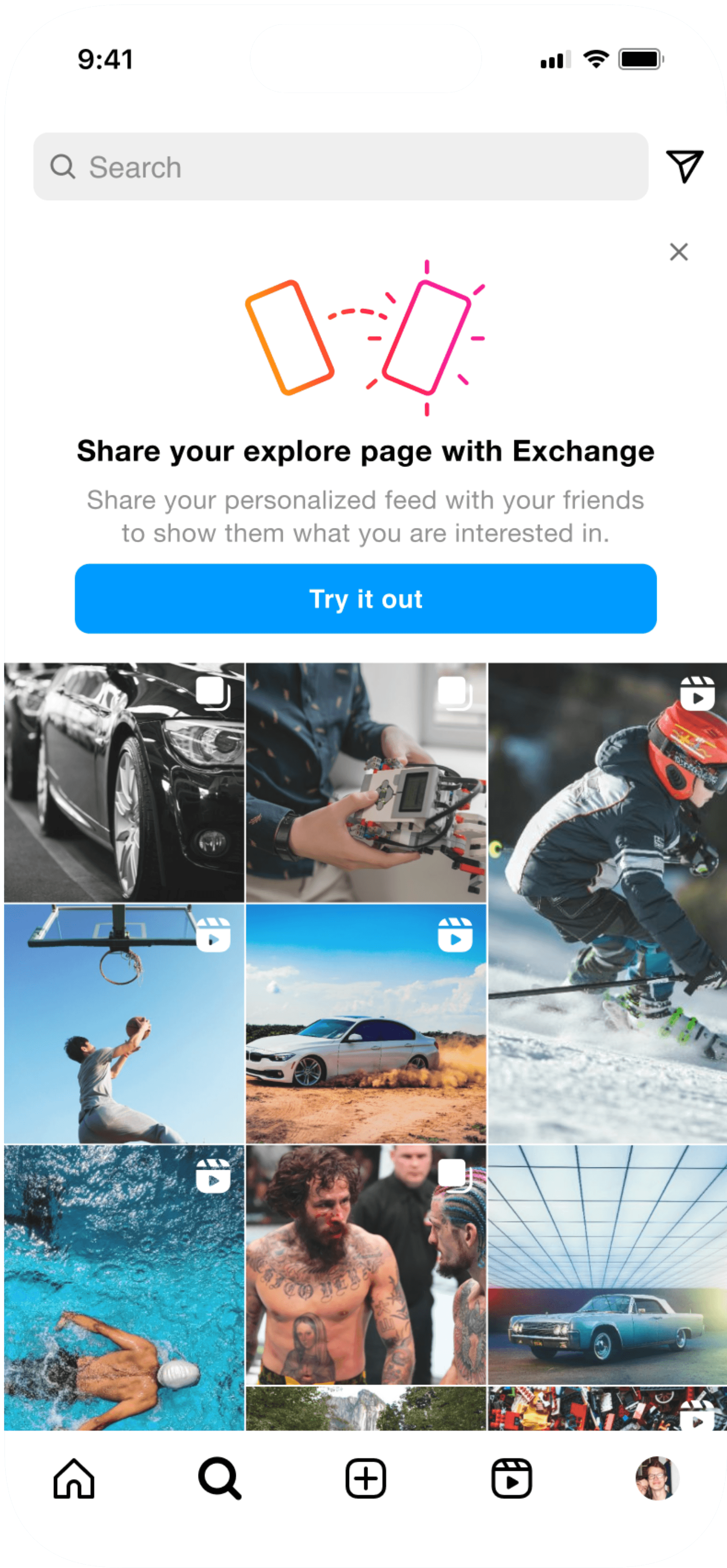 Sharing your explore page with Exchange is simple and snaps to the pattern of sharing any other piece of content in Instagram.