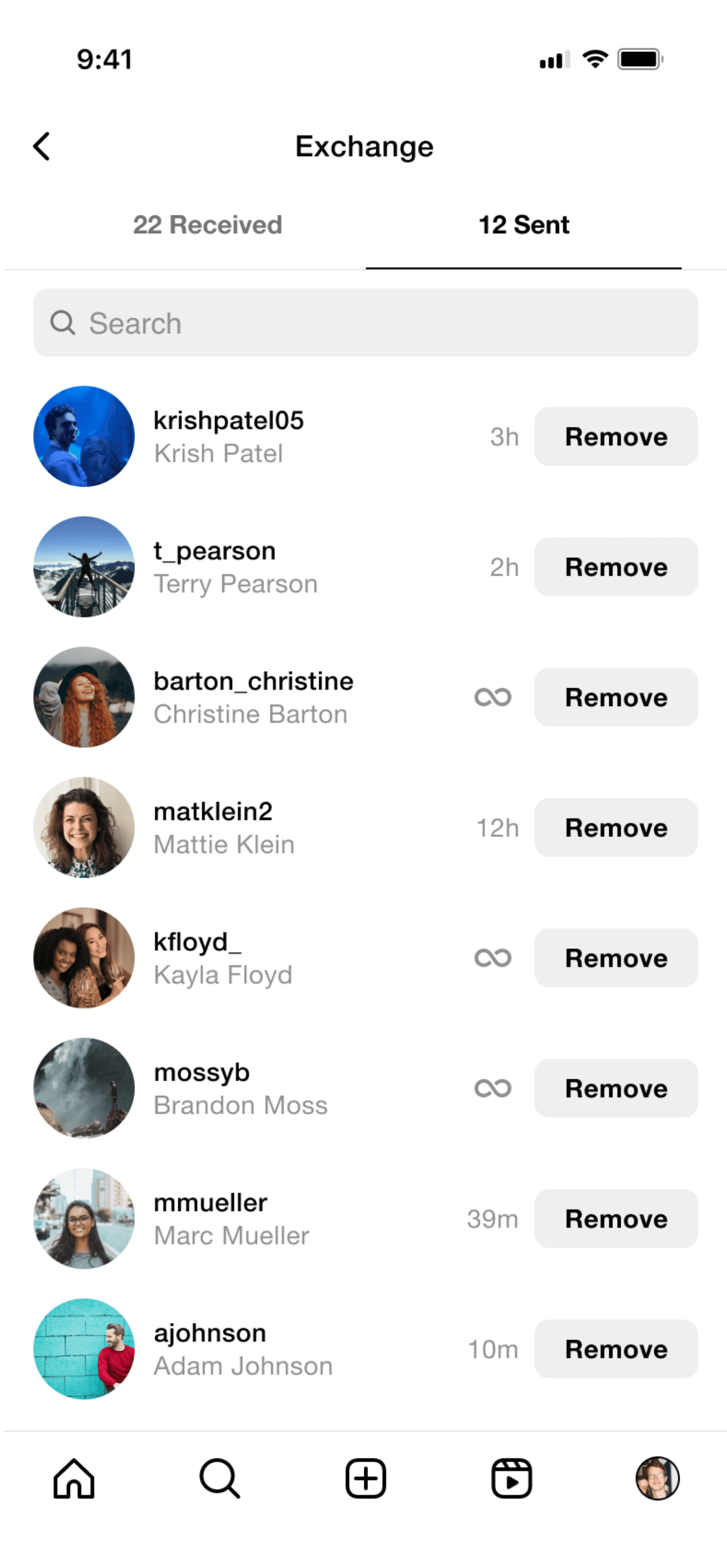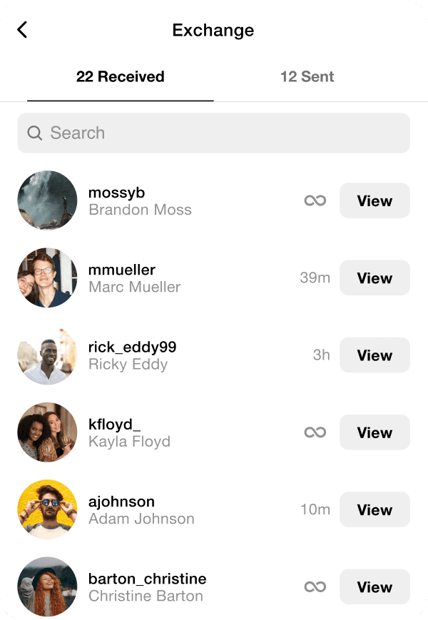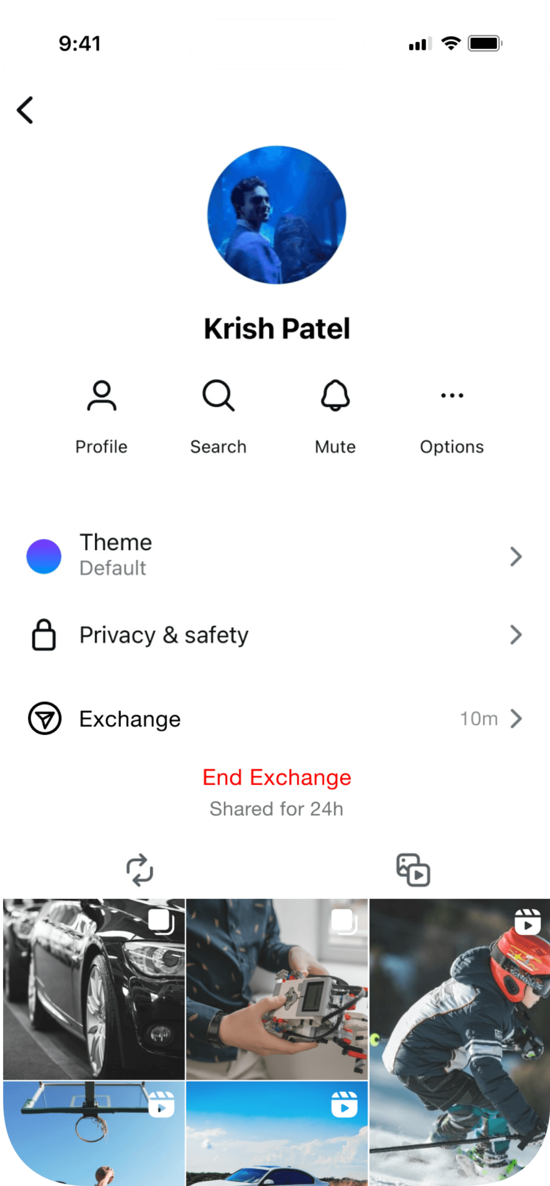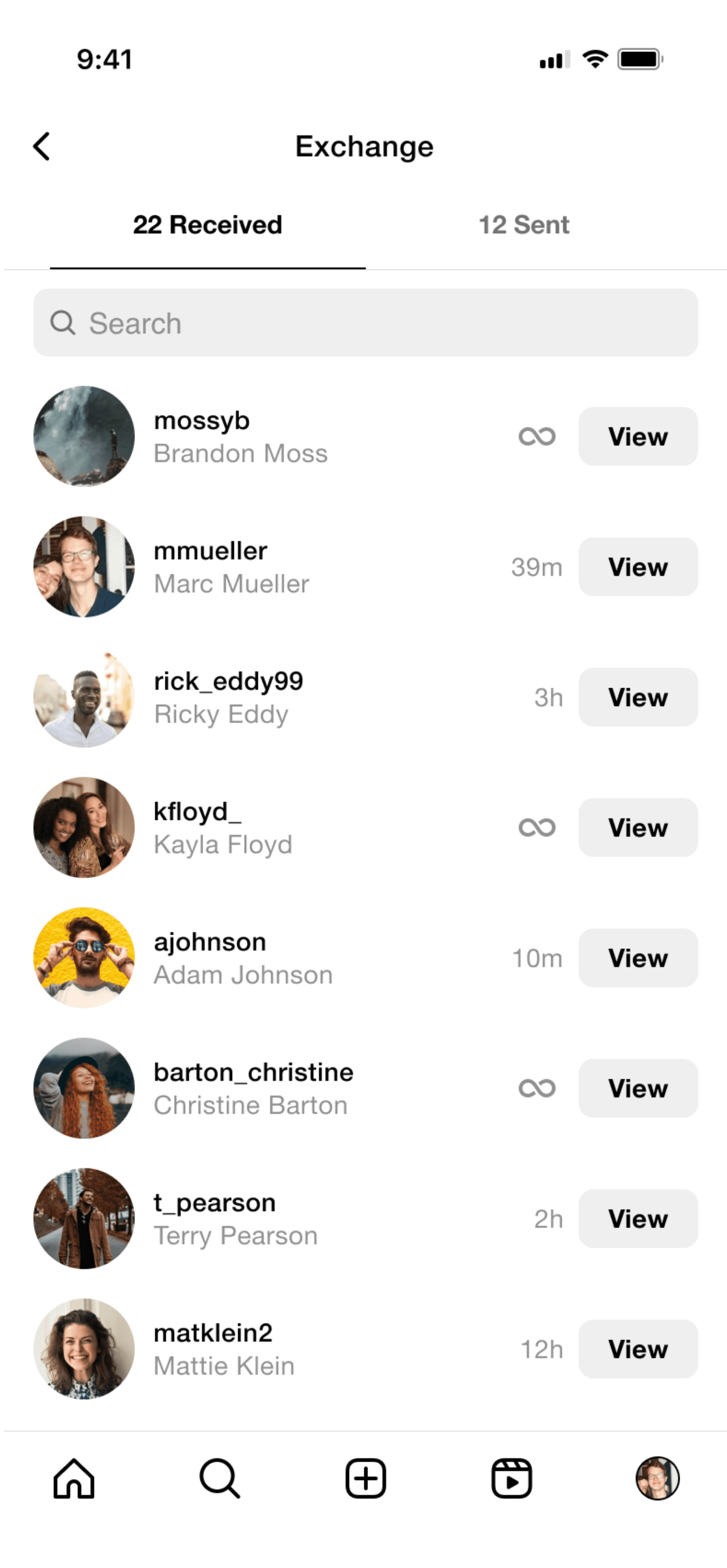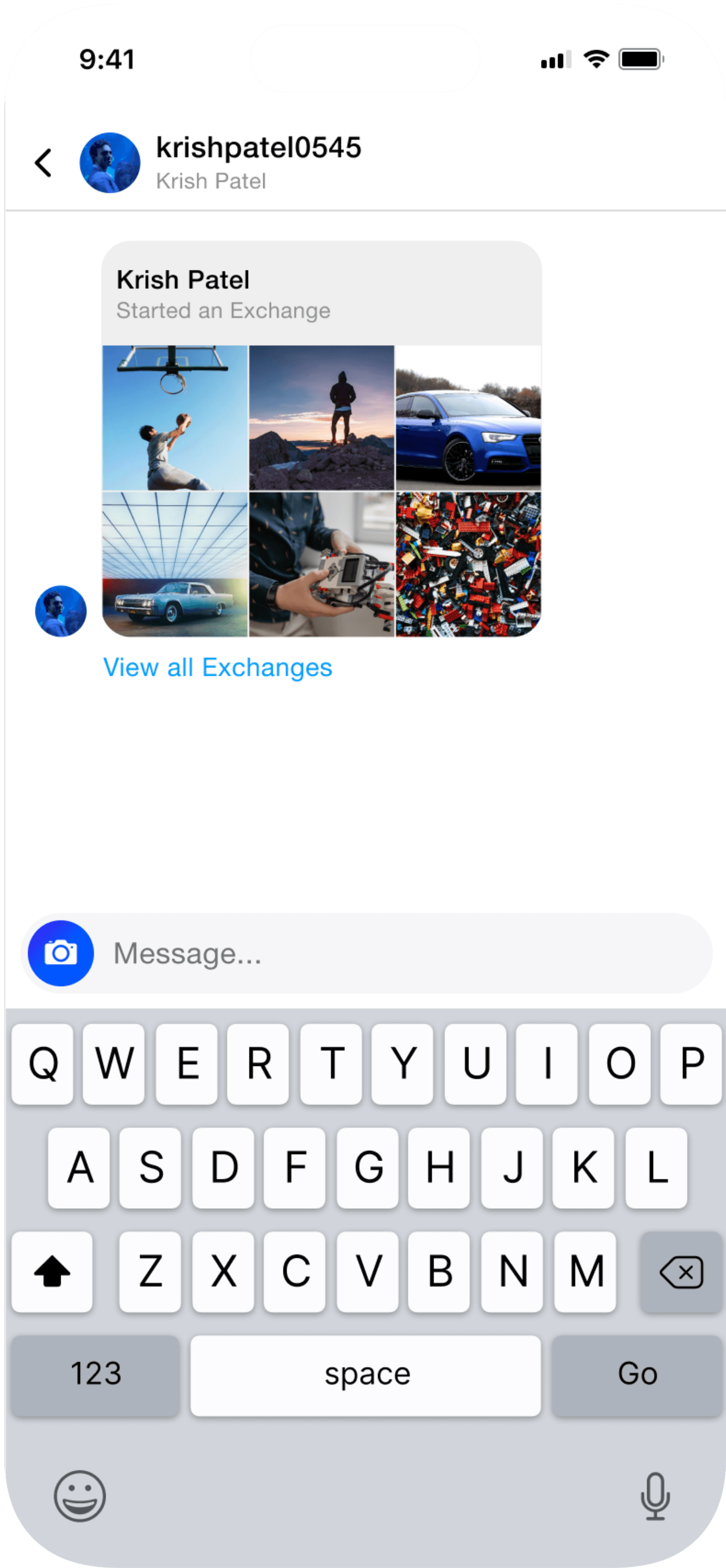 Receiving an Exchange brings you to DMs, a flow that users expect to see when something is shared within Instagram.